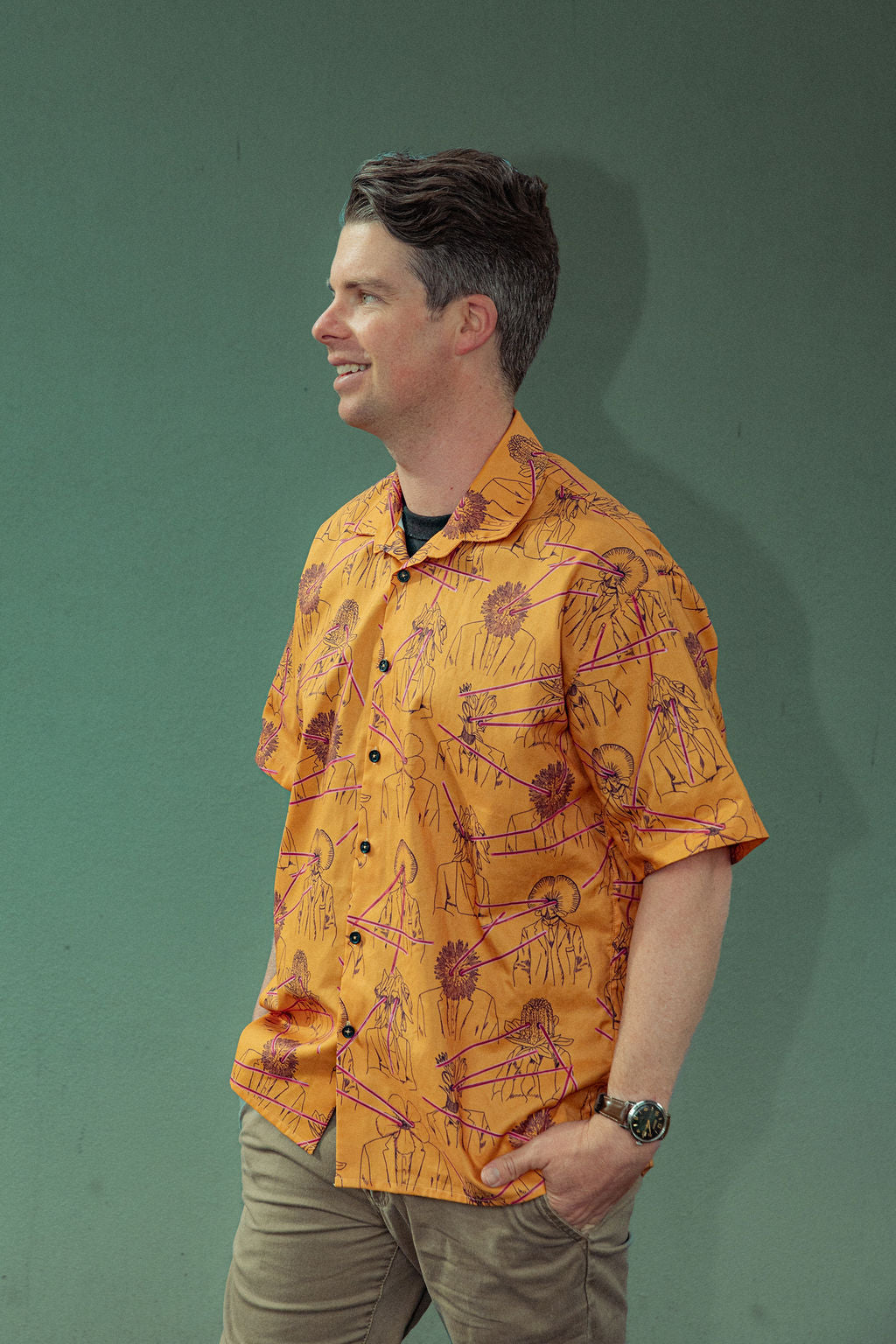 New Print released each month. Only ten shirts are made of each monthly print. Choose your fit and provide you measurements so it's yours. October 2025 Print ->